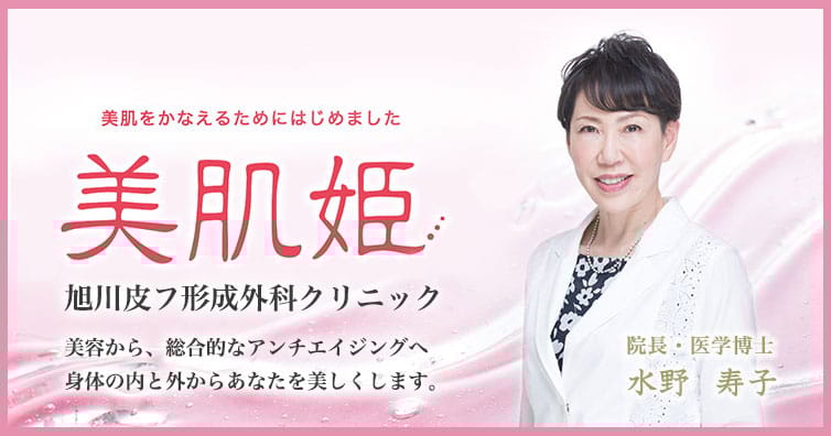 旭川皮フ形成外科クリニック旭川駅から徒歩7分09:00~13:00 / 15:00~18:45 (不定休)旭川市の皮膚科・形成外科・美容皮膚科・美容外科。旭川駅徒歩7分、院長水野寿子。内外両面からの治療を重視し、ムダ毛を含む幅広い美容医療を提供。予約制で最終受付は15分前、不定休。ヒサコーポレーションビル2F、駐車場なし。1回あたり料金(税込) -公式サイトを見る