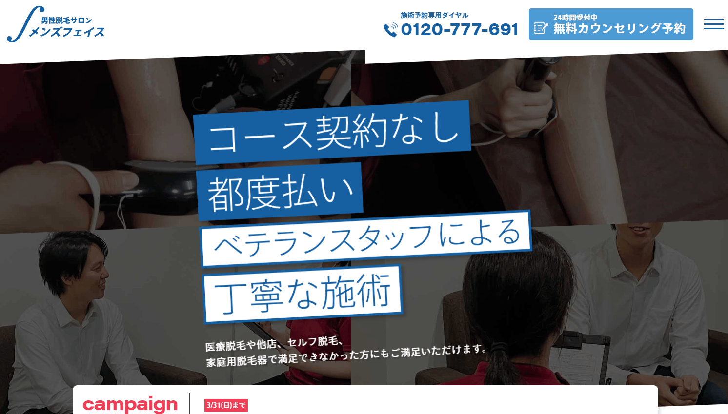 メンズフェイス 刈谷店刈谷駅から徒歩2分月~土 11:00~20:00 日 10:00~19:00メンズフェイス刈谷店は刈谷駅徒歩2分の男性専用サロン。単射式光脱毛を中心に美容電気(ニードル)も対応し、都度払いでコース契約不要、最短3週間間隔で施術可能で学割もあります。1回あたり料金(税込)5,500円/回〜公式サイトを見るプラン1回あたり(税込)総額(税込)回数期間都度払いヒゲ脱毛(全パーツ)¥5,500/回---他1件のプランを見る