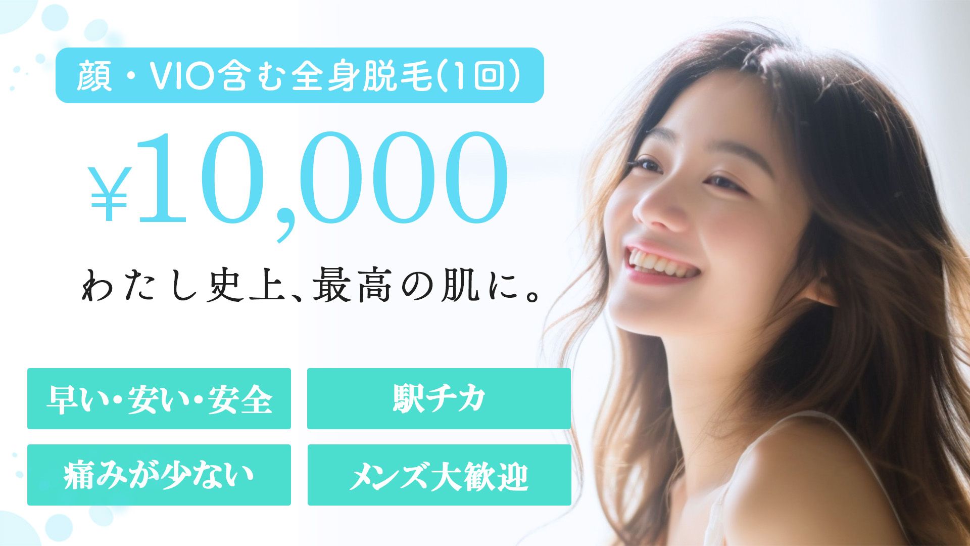 | Perfect 全身脱毛(男性) | - | ¥59,400 | - | VIOを含む全身(上記表のすべての範囲)を医療レーザーで照射する全身脱毛プラン。部位を減らす場合は差額対応。料金は1回ごとの表示です。 |